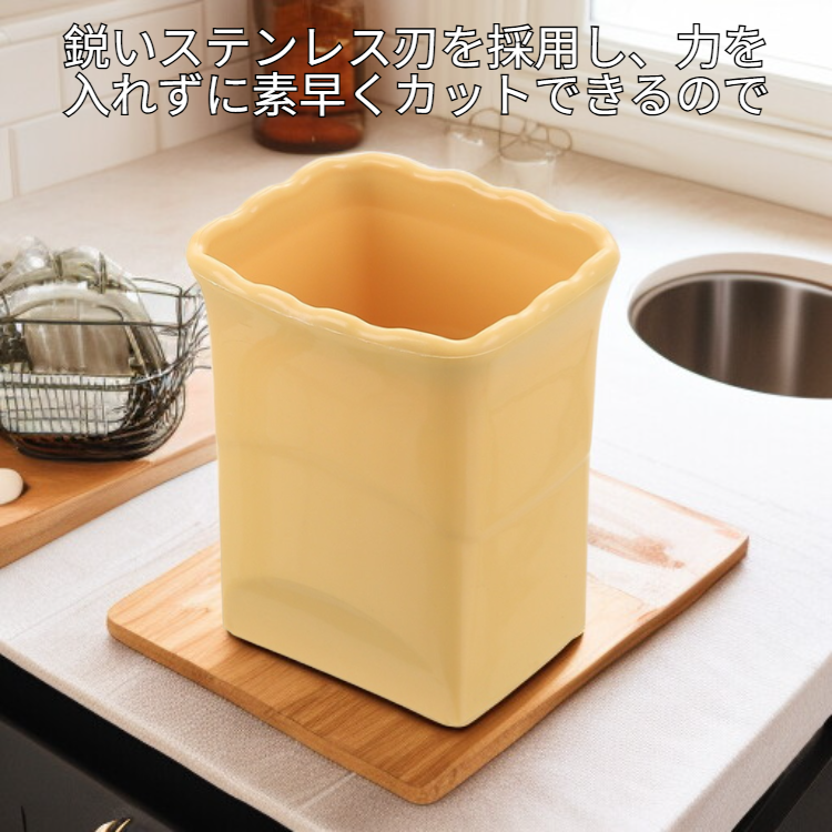 ● 鋭いステンレス刃を採用し、力を入れずに素早くカットできるので、時短調理にも大活躍します。